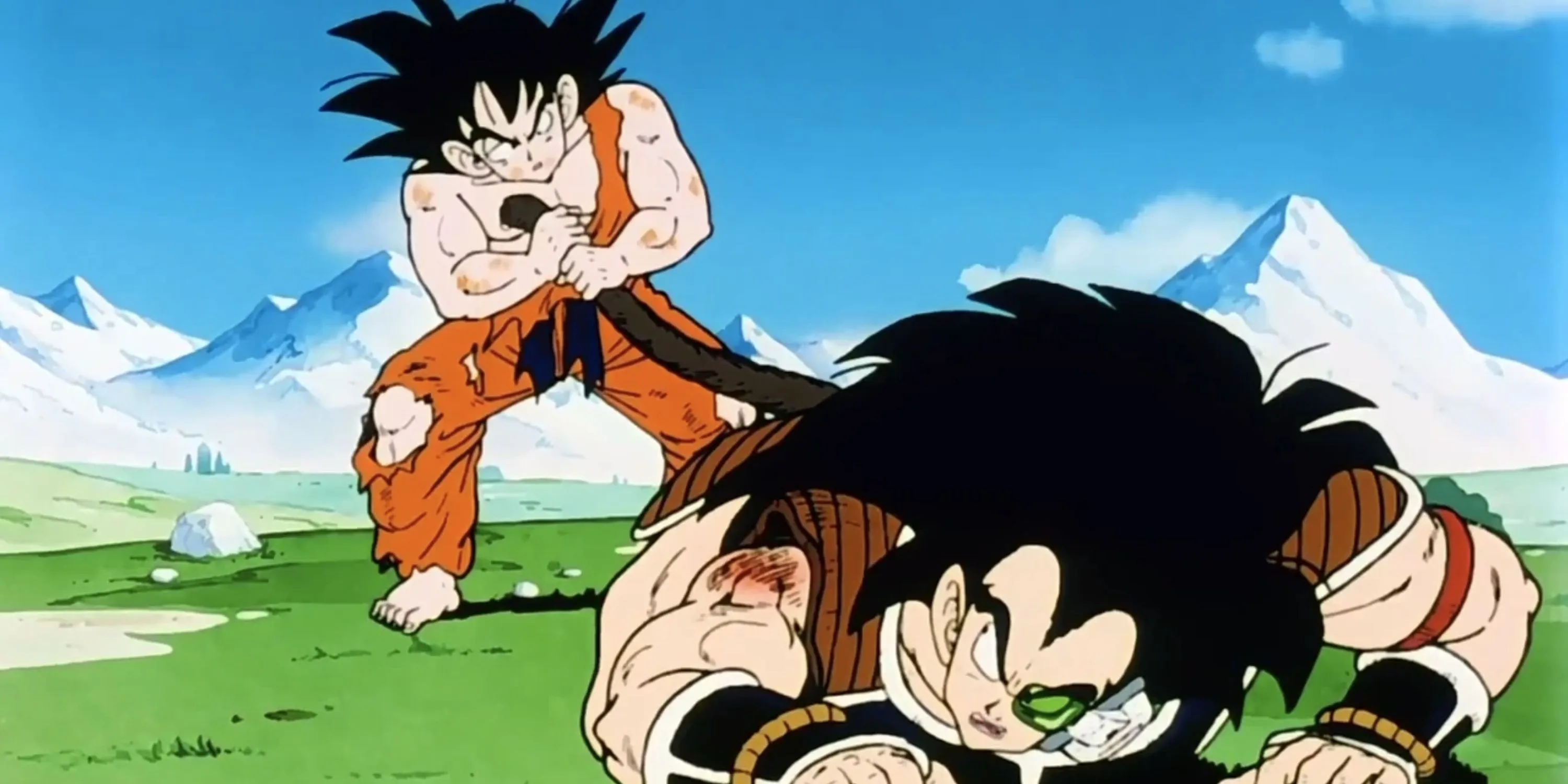 Гоку держит Радица за хвост в «Драконьем жемчуге Зет»