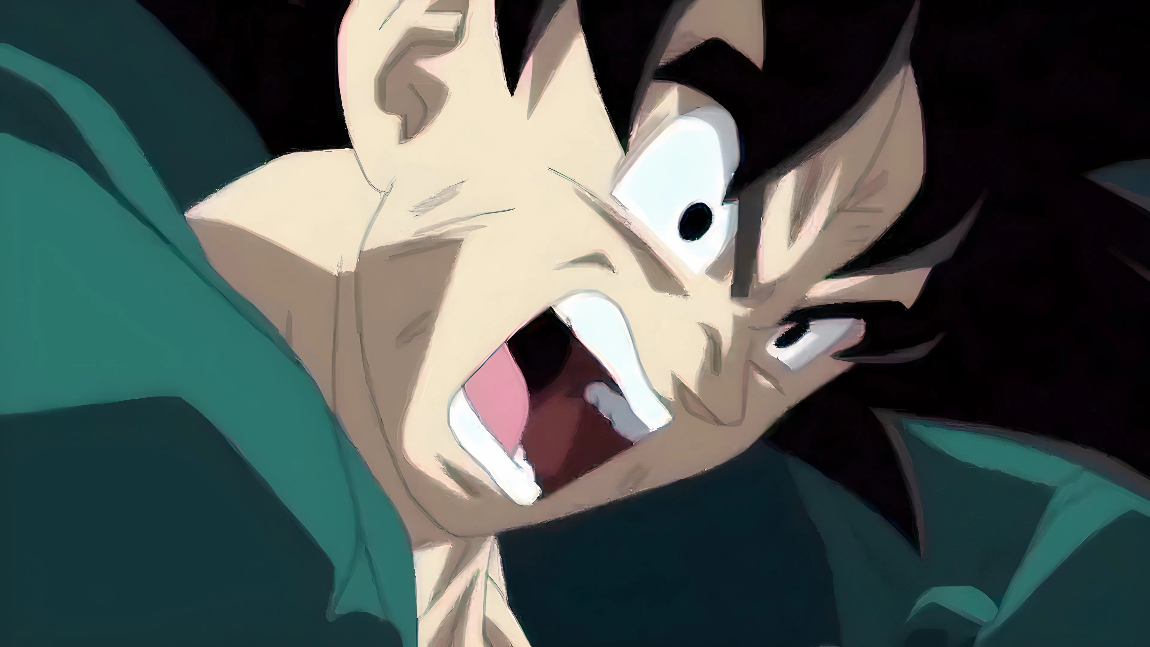 Первый бой с Бирусом. Гоку почти повержен, вдавлен в землю, и из последних сил кричит, что не позволит уничтожить его мир. Отчаянный, сырой момент, где единственное, что удерживает планету от гибели, это воля одного человека. Не трансформация, не новая техника. Просто крик отчаяния и любви.