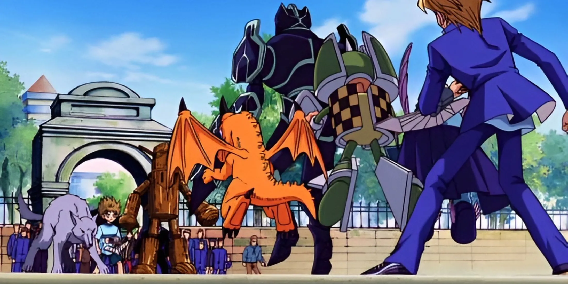 Кадр из аниме «Югио! Пирамида Света», битва монстров