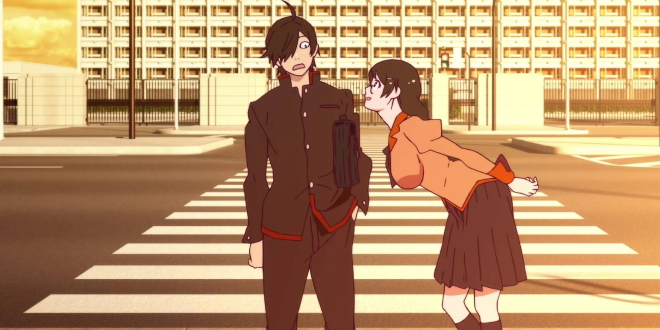 SHAFT превратила приквел серии «Моногатари» в визуальный эксперимент, где каждый кадр, это самостоятельное произведение графического дизайна. История встречи Коёми Арараги с вампиршей Кисс-Шот строится на диалогах и атмосфере, а не на экшене. Минимум персонажей, максимум стиля: пустые пространства, контрастное освещение, геометрические тени.