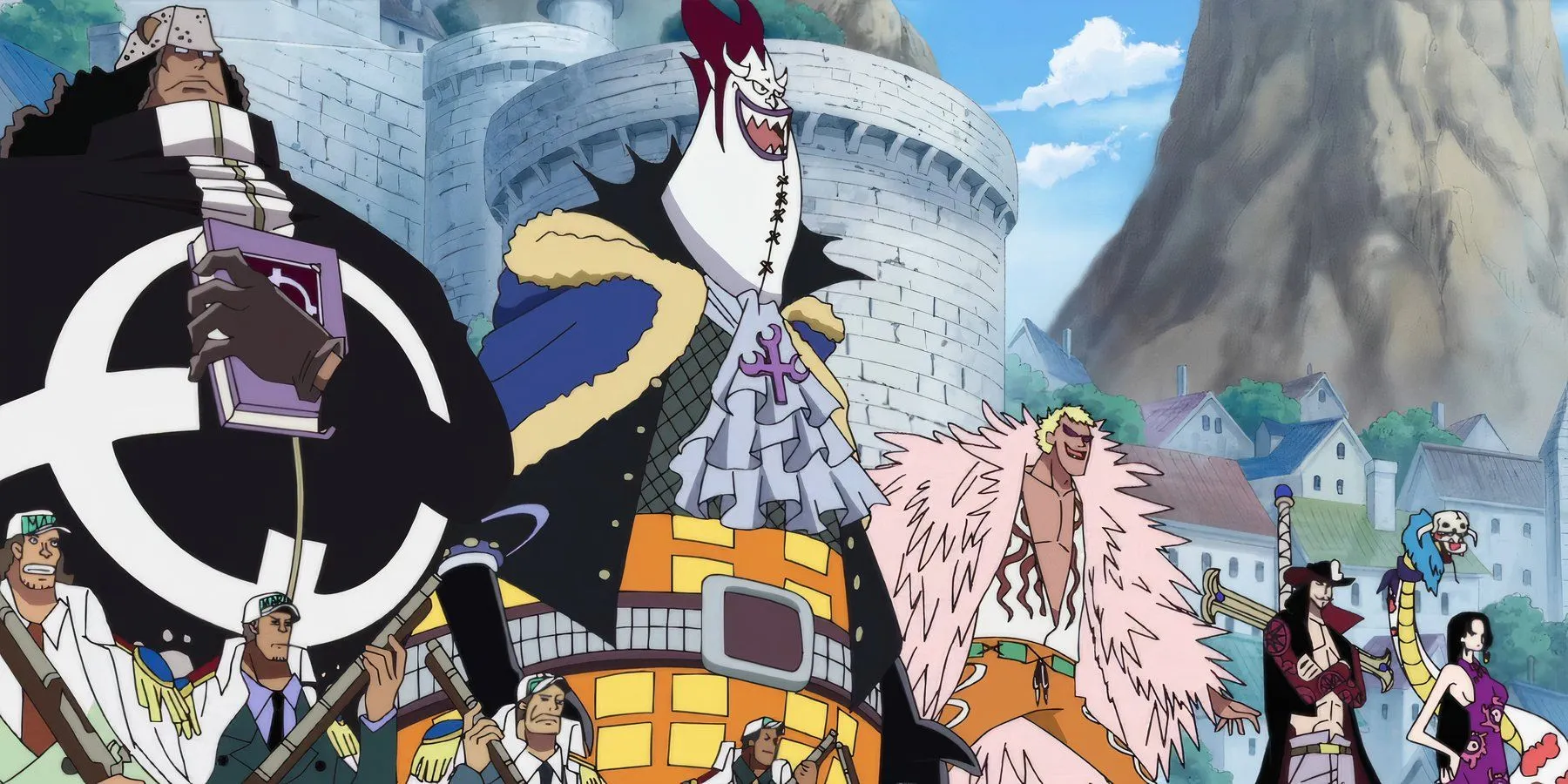 Ситибукай в «Ван-Пис» решают ту же нарративную задачу. Семь сильнейших пиратов, заключивших сделку с правительством: у каждого свой стиль, своя тематика, свой уровень безумия. Крокодайл, Дофламинго, Михоук, каждое имя предвещает арку, которая полностью перевернёт историю.